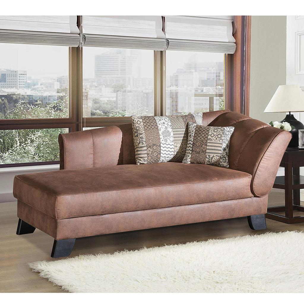 Chaiselongue/ Longchair. Einzelliege im Landstil mit dezenter Steppung. Komplett mit zwei Dekokissen wie auf der Abbildung gezeigt. Geräumiger Bettkasten, aufklappbar. Kopfteil verstellbar mit Rasterbeschlag bis zur Liegeposition. Liegefläche auf "Sitzhöhe", Größe: ca. 80cm x 210cm. Echt- Federkern Sitzpolsterung.