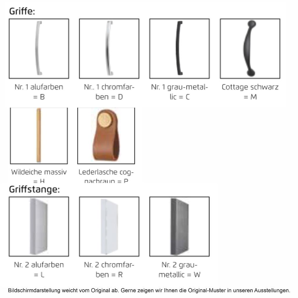 Griffe/Griffstangen: Metall, wahlweise in seidengrau, alpinweiß oder graphit lackiert.
