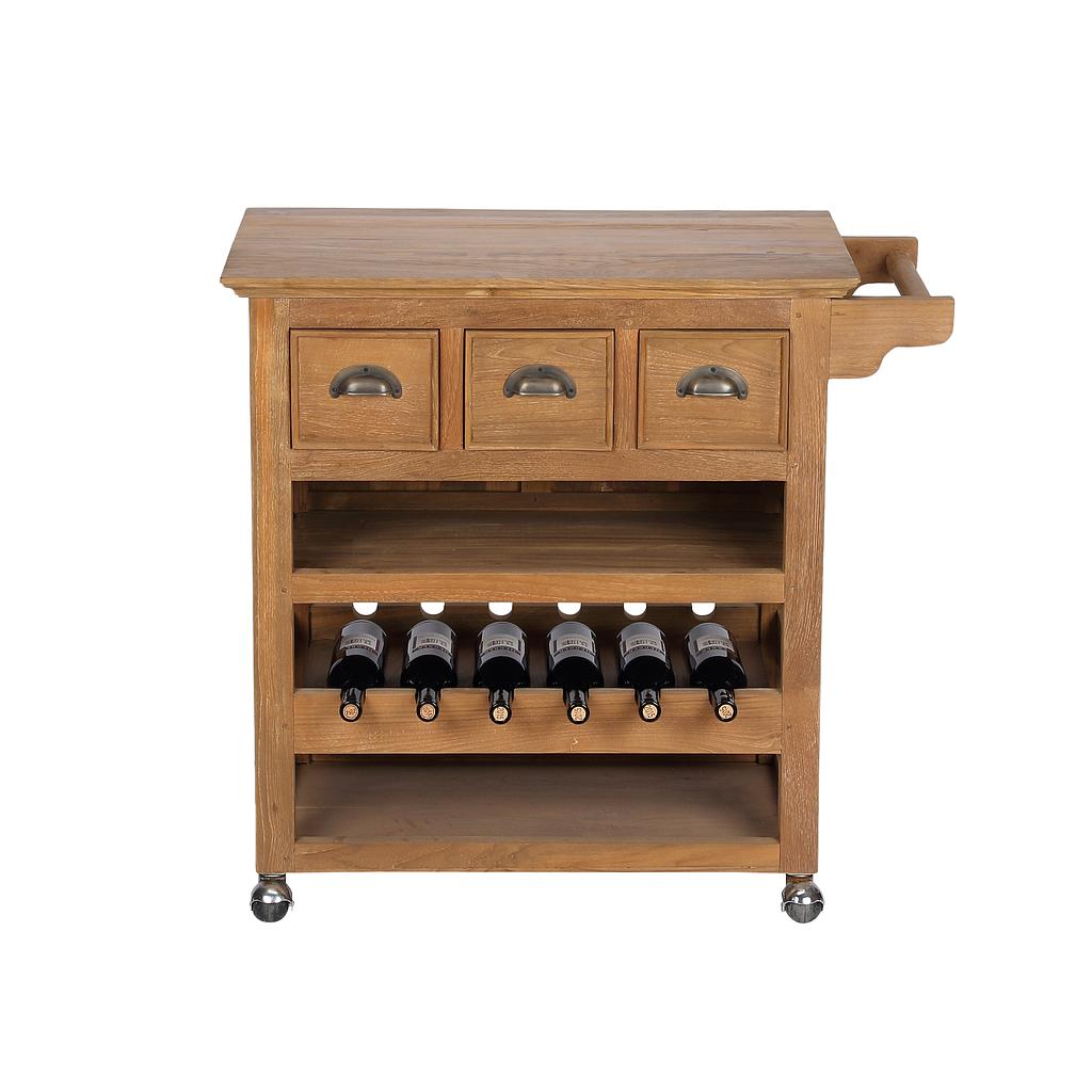 Servierwagen/ Getränkewagen/ Rollbar "LORRAINE-20". Massives Unikatmöbel aus altem Holz. Nach traditionellen Vorbildern in französischer LANDART gefertigt. Einteilung: - Drei Schubladen, - Praktische Flaschenablage, - Vier Rollen - Klassische Metallbeschläge.