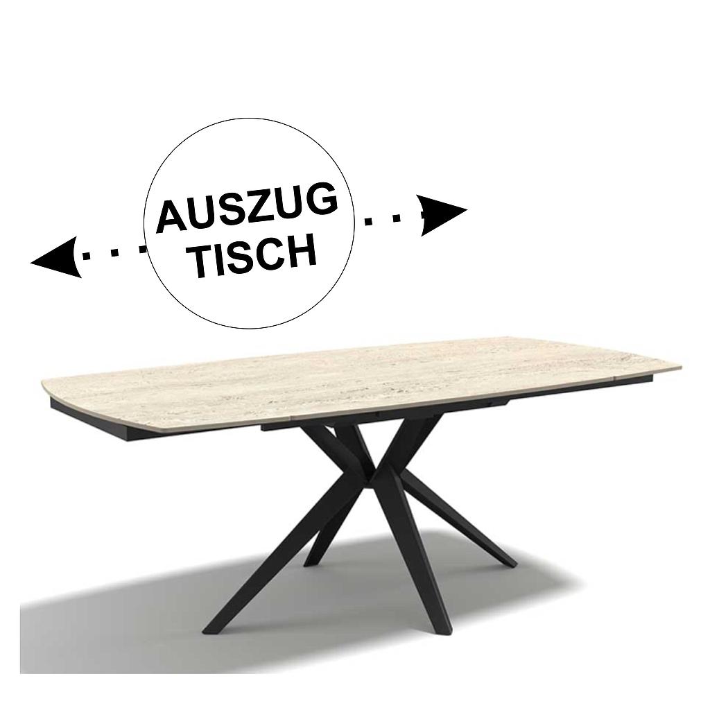 Auszug-Esstisch "TANGO" (140+30+30cm) mit widerstandfähiger Keramik in eleganter Bootsform. Patentierter Auszieh-Mechanismus mit zwei innenliegenden Erweiterungsplatten (je 30cm). Diesen Tisch erweitern Sie im "Handumdrehen" mit geringem Kraftaufwand. Grundmaß 140x100cm ausziehbar auf 200x100cm. Dieser Tisch macht Eindruck durch seine edle Ausstrahlung. Die gemütlich anmutende Farbe "Sand" passt zu vielen Einrichtungsstilen -besonders auch zu echten Holzmöbeln.