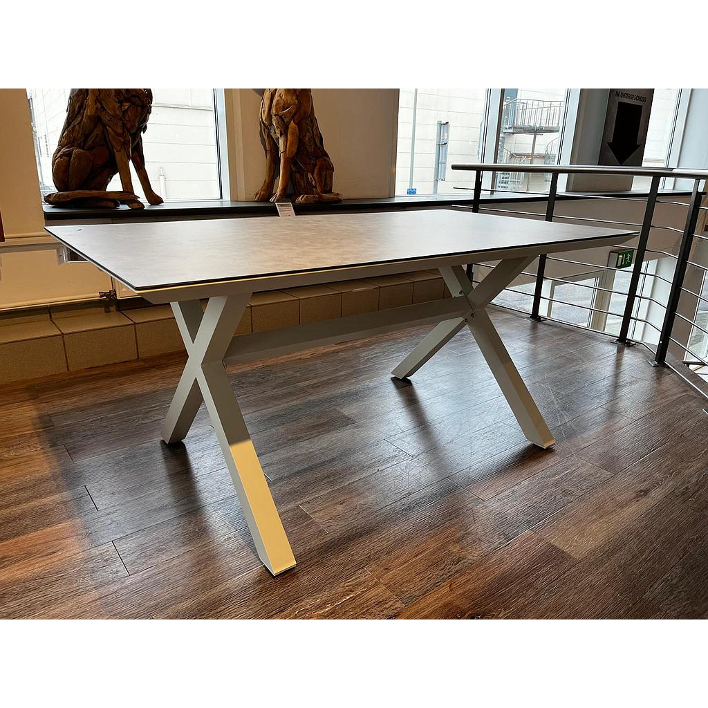 Outdoor-Esstisch mit widerstandfähiger Abdeckplatte "Keramik" Granitdekor NATUR.