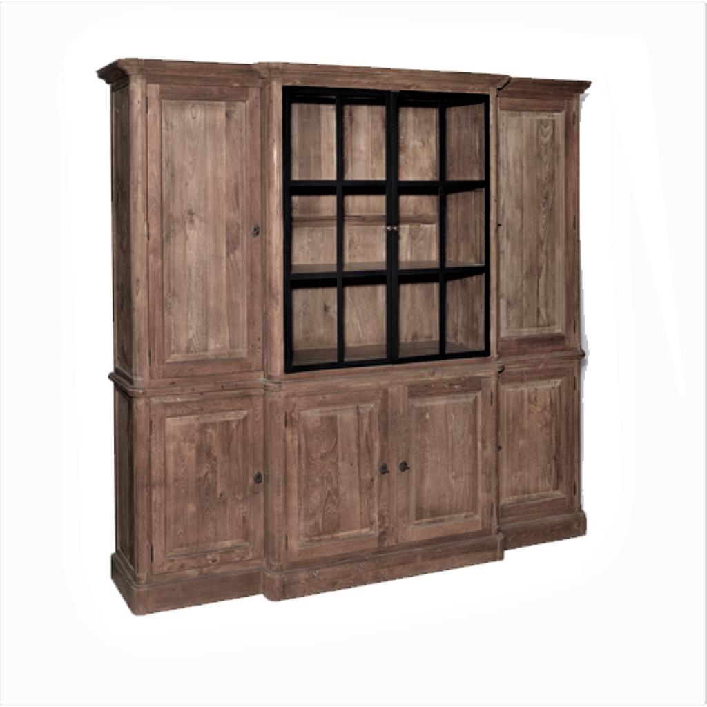 Wohnschrank mit sehr viel Stauraum "BURGUND-05". Dieses traditionelle Unikatmöbel ist aus massivem Holz im ostfranzösischen Landhausstil gefertigt. Extra schwere Qualität. Besonders repräsentativ ist das vorgezogene Mittelteil. Die Ecken und Kanten sind gerundet. Einteilung: -Sechs Paneltüren. -Vier Schubladen auf Teleskop-Auszugschienen. -Zwei verglaste Metallrahmentüren mit Sprossen beschichtet mit schwarzem Pinselstrichlack. Dieses Möbelstück besteht aus zwei Teilen (Unterteil + Aufsatz). -Klassische Metallbeschläge in Messing-Antik.